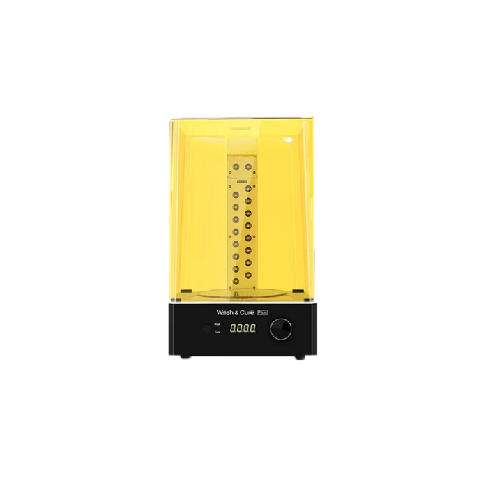 Аппарат предлагает решение 2-в-1 для всех, кто работает с фотополимерными 3D принтерами. Это устройство для очистки спиртом и UV-отвердитель одновременно. Поставляется с герметичным контейнером. Загрузочная корзина просто помещается в прорезь в верхней части устройства и опускается в емкость выше вентилятора. Это позволяет работать даже с самыми высокими моделями. Вращающаяся платформа обеспечивает защиту от ультрафиолетового излучения на 360 градусов, благодаря чему ваш объект обрабатывается со всех сторон.